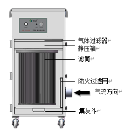 1.煙塵廢氣通過吸煙管/吸煙口進(jìn)入凈化機(jī)內(nèi),首先經(jīng)過均流板導(dǎo)流,