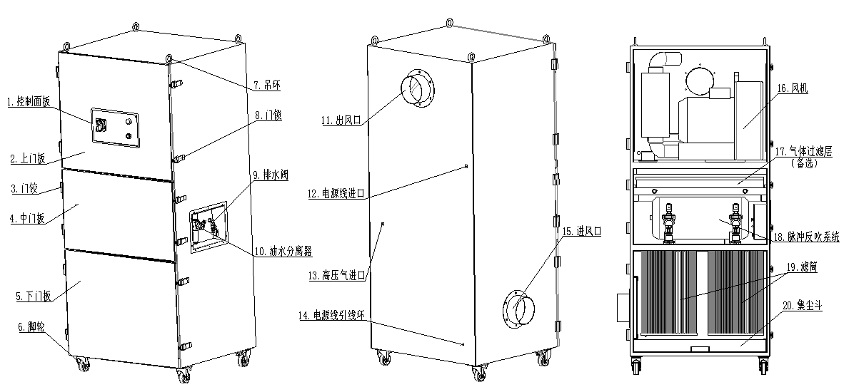 SRA-950XPF防爆脈沖反吹清灰凈化機高壓風機和三層過濾系統(tǒng)組合而成。